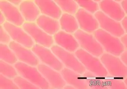 Onion epidermis cells are visible in true color with minimal magnification.