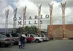 On December 13, 1996, AMC Theatres opened AMC Ontario Mills 30 in Ontario, which it billed as the "world's largest theater".[41] Three months later, Edwards Theaters opened the Edwards Ontario Palace 22 across the street.[41] If the two adjacent parking lots were treated as one, Ontario now had 52 screens on one parking lot, more than any other location in the United States.[41] The opening of that many screens in the Inland Empire came about as the culmination of a lifelong rivalry between AMC's Stanley Durwood and Edwards Theaters's James Edwards.[41] Edwards was infuriated when he learned Durwood had beaten him to a deal with Ontario Mills, and later told him, "I had to teach you a lesson".[41] As a result, the name Ontario became synonymous with self-destructive rivalry in the North American film exhibition industry.[42] At the ShoWest conference in March 1997, Bill Kartozian, the former head of the National Association of Theatre Owners, told the attendees: "Thou shalt not Ontario each other".[42]
