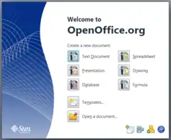OpenOffice.org is an open-source office productivity software suite. It originated from the proprietary StarOffice, developed by Star Division, which was acquired by Sun Microsystems in 1999. Sun open-sourced the software in July 2000 as a free alternative to Microsoft Office,[8][9] and released OpenOffice.org version 1.0 on 1 May 2002.[1] Latest version 4.1.16 in November 2025 is a security update.