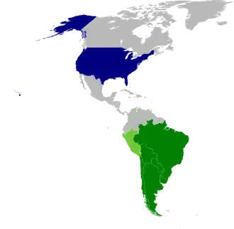 ![]() Main active members (Argentina, Bolivia, Brazil, Chile, Paraguay, and Uruguay) Sporadic member (Peru) Collaborator and financier (United States) | |