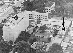 On the afternoon of 29 April 1975, Hubert van Es, a Saigon-based photographer for United Press International, took the iconic photo of Operation Frequent Wind of an Air America UH-1 on a rooftop picking up Vietnamese evacuees.[46][47] The building in the photo was the Pittman Apartment building at 22 Gia Long Street (now 22 Lý Tự Trọng Street), which was used as a residence by various embassy, CIA, and USAID employees. It has often been misidentified as the US Embassy.[48] Hubert van Es' photo is frequently used in political cartoons commenting on US foreign policy.[49]