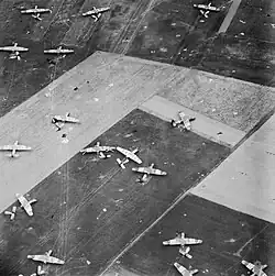 A few minutes later, between 23:00 and 23:20, six Armstrong Whitworth Albemarle transports took off carrying pathfinders of the 22nd Independent Parachute Company, who were to mark the three drop-zones to be used by the airborne troops of the division.[32] Another sixteen Albemarles followed the transports carrying the pathfinders, these transported elements of the 9th Parachute Battalion, 1st Canadian Parachute Battalion, and 3rd Parachute Brigade Headquarters.[33]
