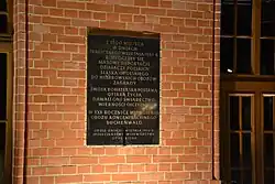 On August 31, the day before the German invasion of Poland that began World War II, the Germans began mass arrests of prominent Poles in the city, which were continued in September.[28] Among the arrested Poles were activists, entrepreneurs, journalists, editors, scout leaders, the director of the local Polish bank and the director of the local Polish library.[29] The Nowiny Codzienne newspaper was closed down on September 1, and its editorial team, including editor-in-chief Jan Łangowski, was deported to concentration camps.[30] In September 1939, local Polish organizations were closed down by the German police and Gestapo, and the assets of the local Polish bank were confiscated.[31] On 13 September and 4 October 1939, arrested Poles were deported from the city to concentration camps, men to Buchenwald and women to Ravensbrück.[32] Some local Poles avoided arrest by escaping earlier to Poland.[27]