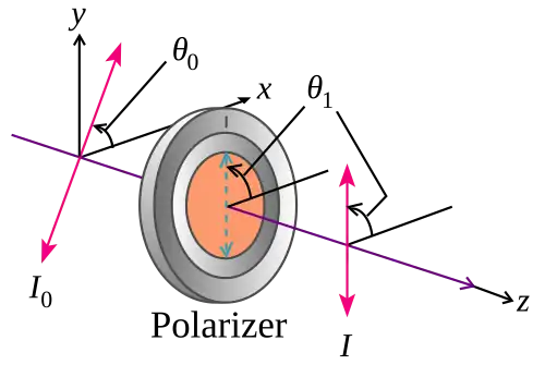 where I0 is the initial intensity, and θi is the angle between the light's initial polarisation direction and the axis of the polariser.[95]