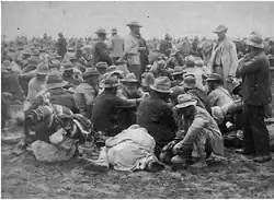 An estimate in 1875: White: 75,000; Native and Coloured: 25,000.[1] The first census, carried out in March 1880, reported 61,022 Europeans and 72,496 Black natives, total 133,518 inhabitants, out of which 70,150 were men.[16] 'Europeans' made up 45.7% of the population.[17] Bloemfontein, the capital, had 2,567 inhabitants.[18] The 1890 census, which was reportedly not very accurate, found a population of 207,503.[19]