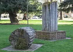 The capitol grounds cover three city blocks and include Willson and Capitol parks.[11] Near the west entrance of the capitol is a replica of Philadelphia's Liberty Bell. This bell is one of 53 full-sized replicas made in France and donated by the United States government to each state.[48] Oregon received its copy on July 4, 1950.[54] Throughout the grounds are native trees and shrubs, including blue spruce, Oregon-grape (the state flower), giant sequoia, coast redwood, Japanese maple, dogwood species, Bradford pear, cherry tree species, English holly, rhododendron, and magnolia tree species. One Douglas-fir tree was grown using a seed that rode aboard Apollo 14 to the Moon in 1971 and was transplanted to the capitol in 1976 from Oregon State University.[54]