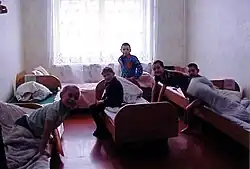 Research from the Bucharest Early Intervention Project (BEIP) is often cited as demonstrating that residential institutions negatively impact the wellbeing of children. The BEIP selected orphanages in Bucharest, Romania that raised abandoned children in socially and emotionally deprived environments in order to study the changes in development of infants and children after they had been placed with specially trained foster families in the local community.[18] This study demonstrated how the loving attention typically provided to children by their parents or caregivers is pivotal for optimal human development, specifically of the brain; adequate nutrition is not enough.[19] Further research of children who were adopted from institutions in Eastern European countries to the US demonstrated that for every 3.5 months that an infant spent in the institution, they lagged behind their peers in growth by 1 month.[20] Further, a meta-analysis of research on the IQs of children in orphanages found lower IQs among the children in many institutions, but this result was not found in the low-income country setting.[21] Worldwide, residential institutions like orphanages can often be detrimental to the psychological development of affected children. In countries where orphanages are no longer in use, the long-term care of unwarded children by the state has been transitioned to a domestic environment, with an emphasis on replicating a family home. Many of these countries, such as the United States, utilize a system of monetary stipends paid to foster parents to incentivize and subsidize the care of state wards in private homes. A distinction must be made between foster care and adoption, as adoption would remove the child from the care of the state and transfer the legal responsibility for that child's care to the adoptive parent completely and irrevocably, whereas, in the case of foster care, the child would remain a ward of the state with the foster parent acting only as a caregiver. Orphanages, especially larger ones, have had some well publicised examples of poor care.[22][23] In large institutions children, but particularly babies, may not receive enough eye contact, physical contact, and stimulation to promote proper physical, social or cognitive development.[24][25] In the worst cases, orphanages can be dangerous and unregulated places where children are subject to abuse and neglect.[22][26][27] Children living in orphanages for prolonged periods get behind in development goals, and have worse mental health. Orphanage children are not included in statistics making it easy to traffic them or abuse them in other ways. There are campaigns to include orphanage children and street children in progress statistics.[28]
