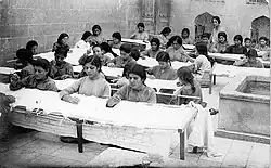 In colonial and early America, orphanages that housed dependent children were rare but became increasingly popular between 1830 and 1860 following challenges associated with immigration, urban poverty, and public health crises like the cholera epidemic.[9] The earliest orphanages were private, religiously affiliated institutions that formed as a reaction to the harsh living conditions experienced by children in public poorhouses. In 1790, the Charleston Orphan House was institutionalized as the first public orphanage in the country. Other orphanages were also set up across the United States led by private or faith-based organizations that screen the eligibility of children to be taken under its custody based on religious denomination and ethnicity.[10] For example, in 1806, the first private orphanage in New York, then the Orphan Asylum Society, now Graham Windham, was co-founded by Elizabeth Schuyler Hamilton, Alexander Hamilton's widow.[11] In 1836, a group of Quaker women opened the first racially segregated orphanage, the Association for the Benefit of Colored Orphans (Colored Orphan Asylum). In 1836, the New York Catholic Protectory was established catering to a broad class of Catholic children, and a few years later, in 1860, a group of German Jews opened the Hebrew Orphan Asylum. These early historical developments paved the way for the extensive and continuing participation of religious groups in child welfare services in the United States today.[12]