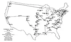 Part of the Works Progress Administration, the Federal Theatre Project (1935–39) was a New Deal program to fund theatre and other live artistic performances and entertainment programs in the US during the Great Depression. It was created as a relief measure to employ artists, writers, directors and theatre workers. Under national director Hallie Flanagan it was shaped into a national theatre that created relevant art, encouraged experimentation and innovation, and made it possible for millions of Americans to see live theatre for the first time.[43]