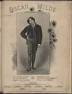 According to biographer Michèle Mendelssohn, Wilde was the subject of anti-Irish caricature and was portrayed as a monkey, a blackface performer and a Christy's Minstrel throughout his career.[75] "Harper's Weekly put a sunflower-worshipping monkey dressed as Wilde on the front of the January 1882 issue. The drawing stimulated other American maligners and, in England, had a full-page reprint in the Lady's Pictorial. ... When the National Republican discussed Wilde, it was to explain 'a few items as to the animal's pedigree.' And on 22 January 1882, the Washington Post illustrated the Wild Man of Borneo alongside Oscar Wilde of England and asked 'How far is it from this to this?'"[75] When he visited San Francisco, the San Francisco Chronicle reported, "The city is divided into two camps, those who thought Wilde was an engaging speaker and an original thinker, and those who thought he was the most pretentious fraud ever perpetrated on a groaning public."[79] Though his press reception was hostile, Wilde was well received in diverse settings across America: he claimed to have drunk whiskey with miners in Leadville, Colorado, and was fêted at the most fashionable salons in many cities he visited.[80]