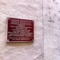 Schindler first arrived in Kraków (Krakau) in October 1939 on Abwehr business and took an apartment the following month. Emilie maintained the apartment in Ostrava and visited Oskar in Kraków at least once a week.[18][19] In November 1939, he contacted interior decorator Mila Pfefferberg to decorate his new apartment. Her son, Leopold "Poldek" Pfefferberg, soon became one of his contacts for black market trading. They eventually became lifelong friends.[20]