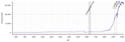 By 1914, Osnabrück had over 70,000 inhabitants.[11] The outbreak of the First World War necessitated food rationing; the Allied blockade and a harsh winter in 1917 led to further shortages.[13] Following Germany's defeat in 1918, a council made up of workers and soldiers took control during the November Revolution, but were replaced by the new Weimar Republic the following year.[14] Similarly to many other German cities, Osnabrück experienced considerable inflation and unemployment in the 1920s, with over 2,000 out of work by 1923 and nearly 14,000 receiving some form of government assistance by 1928.[15]