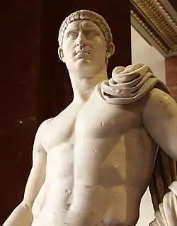 Nero's statues were again set up, his freedmen and household officers reinstalled, including the young castrated boy Sporus whom Nero had taken in marriage and Otho also would live intimately with.[10][11] The populace acclaimed him as "Nero Otho", although Otho did not appear to like the title.[12]