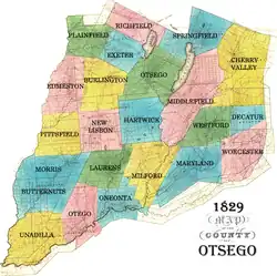 In 1843, Otsego County, Michigan was named after the county in New York.[5]