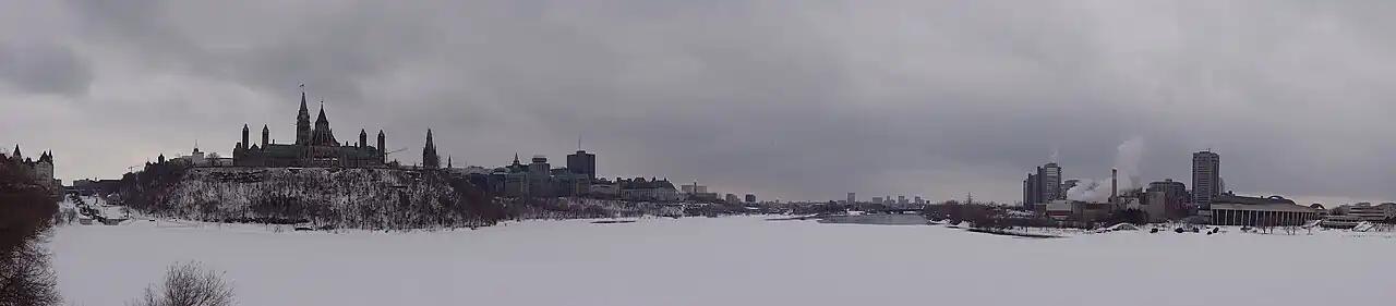 From Lake Timiskaming, the river flows southeast to Ottawa and Gatineau, where it tumbles over Chaudière Falls and further takes in the Rideau and Gatineau rivers.