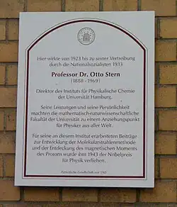 - ^ Otto Stern (2018). Schmidt-Böcking, Horst; Templeton, Alan; Trageser, Wolfgang (eds.). Otto Sterns gesammelte Briefe – Band 1: Hochschullaufbahn und die Zeit des Nationalsozialismus (in German). Berlin: Springer-Verlag. ISBN 978-3-662-55735-8. OCLC 1047864732.