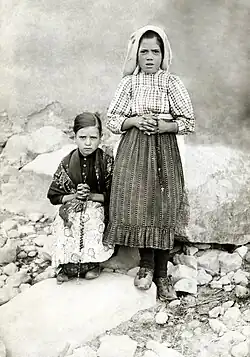 Beginning in the spring of 1916, three shepherd children –Lúcia dos Santos, Francisco and Jacinta Marto– reported three apparitions of an Angel in Valinhos. Then, starting on 13 May 1917, in Cova da Iria, six apparitions of the Blessed Virgin Mary were reported. The children described her as "a Lady more brilliant than the Sun". The children reported a prophecy that prayer would lead to an end to the Great War, and that on 13 October that year the Lady would reveal her identity and perform a miracle "so that all may believe."[4] Newspapers reported the prophecies, and many pilgrims began visiting the area. The children's accounts were deeply controversial, drawing intense criticism from both local secular and religious authorities. A provincial administrator briefly took the children into custody, believing the prophecies were politically motivated in opposition to the officially secular First Portuguese Republic established in 1910.[5]