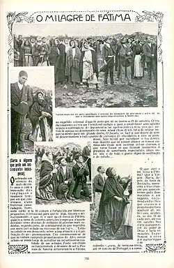 ^Much of this documentation can be found in the book Documentação Crítica de Fátima: seleção de documentos (1917–1930) (that is, Critical Documentation of Fatima – Selection of Documents), published in 2013 by the Shrine of Fatima itself. Other sources: the newspaper "O mensageiro" by Father José Ferreira de Lacerda; the newspaper "O Século" of 23 June 1917; the books Eu vi nascer Fátima by Humberto Pasquale (p. 57 and others) and Os grandes fenómenos da Cova da Iria (pp. 47ff) by Gilberto Fernandes dos Santos