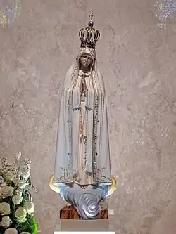 The International Pilgrim image of Our Lady of Fátima has traveled the world since the 1950s.A replica of the original image at the Manila CathedralStatue by Amélia Carvalheira dedicated to the apparition of Our Lady which occurred exceptionally on 19 August 1917, in Valinhos, near Cova da Iria