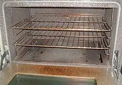 An oven is a tool that is used to expose materials to a hot environment. Ovens contain a hollow chamber and provide a means of heating the chamber in a controlled way.[1] In use since antiquity, they have been used to accomplish a wide variety of tasks requiring controlled heating.[2] Because they are used for a variety of purposes, there are many different types of ovens. These types differ depending on their intended purpose and based upon how they generate heat.