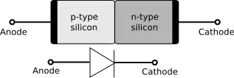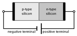 Negative charge carriers (electrons) can easily flow through the junction from n to p but not from p to n, and the reverse is true for positive charge carriers (Electron hole). When the p–n junction is forward-biased, charge carriers flow freely due to the reduction in energy barriers seen by electrons and holes.[4] When the p–n junction is reverse-biased, however, the junction barrier (and therefore resistance) becomes greater and charge flow is minimal.