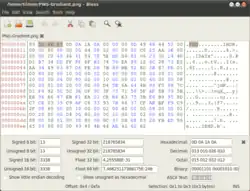 A PNG file starts with an eight-byte signature[19] (refer to hex editor image on the right):