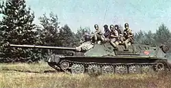 The PT-76 was used as the standard reconnaissance tank of the Soviet Union and Warsaw Pact armies. It was also intended for water obstacle fording operations and naval infantry landings. It served in the reconnaissance subunits of tank divisions and mechanized divisions of the Red Army and Soviet marines divisions. Although it has been replaced in front line service by the BMP-1, it may still be found in the reconnaissance companies and battalions of some motorized rifle and tank regiments and divisions, as well as in naval infantry units. Aside from its reconnaissance role, it is also used for crossing water obstacles in the first wave of an attack and for artillery support during the establishment of a beachhead.[13][14][15] The main disadvantage of the BMP-1 and the BRM-1 when compared to the PT-76 is the absence of a powerful main armament. However, the BRM-1 is fitted with more modern reconnaissance equipment. Also, both vehicles have stronger front armor and superior mobility features and the BMP-1 can carry up to 8 fully equipped soldiers inside. The PT-76 is still on active service in a number of countries mainly in the developing world. The Russian Army is reported to have used PT-76 units in the war in Chechnya.[1][7]
