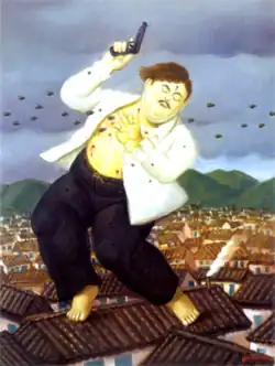 Escobar's legacy remains controversial; while many denounce the heinous nature of his crimes, he was seen as a "Robin Hood-like" figure for many in Colombia, as he provided amenities to the poor. His killing was mourned and his funeral attended by over 25,000 people.[7] Additionally, his private estate, Hacienda Nápoles, has been transformed into a theme park.[8] His life has also served as inspiration for or has been dramatized widely in film, television, and in music.