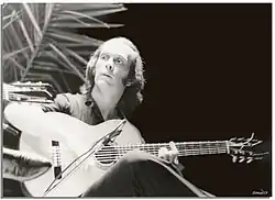 At the age of 14 he made his first record with his brother Pepe, Los Chiquitos de Algeciras (The little ones from Algeciras).[17] In the early 1960s, de Lucía toured with the flamenco troupe of dancer José Greco.[5] In New York City in 1963, at the age of 15, he had his second encounter with Sabicas and his first encounter with Mario Escudero, both of whom became de Lucía's mentors and later close friends. They urged him to start writing his own material, advice he took to heart.[16] In 1964, he met Madrileño guitarist Ricardo Modrego with whom he recorded three albums: Dos guitarras flamencas (1964), 12 canciones de García Lorca para guitarra and 12 éxitos para 2 guitarras flamencas (1965).