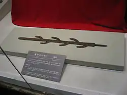 The town leaders and its subjects participated in the military of Baekje on a local level, and loot and captives were distributed among them. The subjects usually worked in the supply division. The position of Jwajang led the military.[23] Geunchogo established the division of central military and local militaries. The people of Baekje usually served in the military for three years.[23] As Baekje entered the Sabi period, the military was divided into the royal private guard, the capital central military and the local military.[23] The royal private guard handled matters such as protecting the palace.[23] The weapons available to the soldiers were diverse.[23]