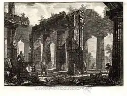 - ^ Piranesi's full title was Differentes vues de quelques restes de trois grands édifices qui subsistent encore dans le milieu de l'ancienne ville de Pesto autrement Possidonia, et qui est située dans la Lucanie, 1778