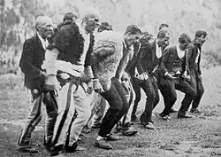 Paganism in Albania serves as an example of how indigenous folk religious practices persisted under official policies of Christian conversion. Proto-Albanian speakers were Christianized under the Latin sphere of influence, specifically in the 4th century CE, as shown by the basic Christian terms in Albanian, which are of Latin origin and entered Proto-Albanian before the Gheg–Tosk dialectal diversification.[56][57] Regardless of Christianization, paganism persisted among Albanians, and especially within the inaccessible and deep interior[58] where Albanian folklore evolved over the centuries in a relatively isolated tribal culture and society.[59] It has continued to persist, despite partially transformation by Christian, and later Muslim and Marxist beliefs, that were either to be introduced by choice or imposed by force.[60] The Albanian traditional customary law (Kanun) has held a longstanding, unwavering, and sacred – although secular – unchallenged authority with a cross-religious effectiveness over the Albanians, which is attributed to an earlier pagan code common to all the Albanian tribes.[61] Historically, the Christian clergy has vigorously fought, but without success, to eliminate the pagan rituals practiced by Albanians for traditional feasts and particular events, especially the fire rituals (Zjarri).[62][63]