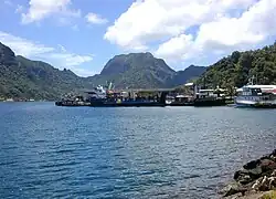 Tutuila Island was acquired by the United States through a treaty in 1877.[76] One year after the naval base was built at Pearl Harbor in 1887, the U.S. government established a naval station in Pago Pago.[77] It was primarily used as a fueling station for both naval- and commercial ships.[78]
