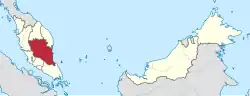 Pahang (Malay pronunciation: [paˈhaŋ]; Pahang Hulu Malay: Paha, Pahang Hilir Malay: Pahaeng, Ulu Tembeling Malay: Pahaq), officially Pahang Darul Makmur with the Arabic honorific Darul Makmur ("The Abode of Tranquility") is a sultanate and a federal state of Malaysia. It is the third largest state in the country and the largest state in Peninsular Malaysia, and the ninth most populous.[8] The state occupies the basin of the Pahang River, and a stretch of the east coast as far south as Endau. The state borders the Malaysian states of Kelantan and Terengganu to the north, Perak, Selangor and Negeri Sembilan to the west and Johor to the south, with the South China Sea is to the east. Pahang is separated from the west coast states by the Titiwangsa Mountains that forms a natural divider between the peninsula's east and west coasts from north to south, and from Terengganu in the east by the Pantai Timur Range. The state's highest elevation culminates at Mount Tahan in the eponymous Tahan Range, which is 2,187 metres (7,175 ft) high. Although two thirds of the state is covered by dense rain forest, its central plains are intersected by numerous rivers, and along the coast there is a 32-kilometre (20 mi) wide expanse of alluvial soil that includes the deltas and estuarine plains of the Kuantan, Pahang, Rompin, Endau, and Mersing Rivers.[9]