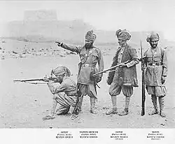 Pictured are troops of the Khyber Rifles, now part of the Frontier Corps, striking a pose, c. 1895.
