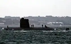 Navy Day is celebrated on 8 September to commemorate its service in the Indo-Pakistani War of 1965. According to author Tariq Ali, the navy lost one-half of its force in the Indo-Pakistani War of 1971.[87] The Navy heavily depended on American-built naval technology and operated a large infrastructure from 1947 to 1971.[83] The Pressler amendment forced an embargo in the 1990s, during which the navy developed air independent propulsion (AIP) technology purchased from France and built the Agosta-class submarines; two of these (as well as one of the new frigates) were built at Pakistan's facilities in Karachi.[88] The navy's surface fleet consists of helicopter carriers, destroyers, frigates, amphibious assault ships, patrol ships, mine-countermeasures, and miscellaneous vessels.[89] Established in 1972, the Naval Air Arm provides fleet air defence, maritime reconnaissance, and anti-submarine warfare capability. Mirage 5 aircraft donated by the PAF are flown by the Navy, equipped with Exocet anti-ship missiles.[89] The Navy's fleet of P-3C Orion turboprop aircraft, equipped with electronic intelligence (ELINT) systems, play a pivotal role in the Navy's gathering of intelligence.[90] Since 2001, the navy has emphasised its role and expanded its operational scope across the country with the establishment of Naval Strategic Forces Command, based in Islamabad.