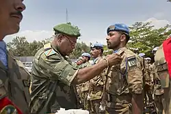 Pakistani soldiers being decorated after a tour of duty with the UN in the DR Congo