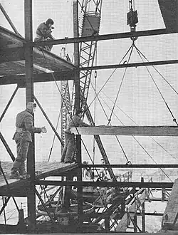 Construction started in May 1952 and lasted until July 1955. The tower was built using Soviet plans. It is estimated that between 3,500 and 5,000 Soviet guest workers and 4,000 local Polish workers participated in the project. 16 workers died in accidents during construction.[17] The builders were housed at a new residential complex built at Poland's expense in the Bemowo district of Warsaw, called Osiedle Przyjaźń ("Friendship Neighborhood"). The complex had its own cinema, a food court, a community center and a swimming pool.[5][17]