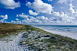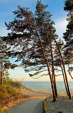 Palanga is the busiest and the largest summer resort in Lithuania and has sandy beaches (18 km, 11 miles long and up to 300 metres, 1000 ft wide) and sand dunes.[3][4]