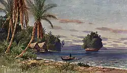 The country was originally settled approximately 1,000 BCE by migrants from Maritime Southeast Asia.[11][12] Palau was first drawn on a European map by the Bohemian missionary Paul Klein[13] (Klein (1652–1717) a missionary, pharmacist, botanist, astronomic observer and writer) based on a description given by a group of Palauans shipwrecked on the Philippine coast on Samar. The Palau islands were made part of the Spanish East Indies in 1885. Following Spain's defeat in the Spanish–American War in 1898, the islands were sold to Germany in 1899 under the terms of the German–Spanish Treaty, where they were administered as part of German New Guinea.