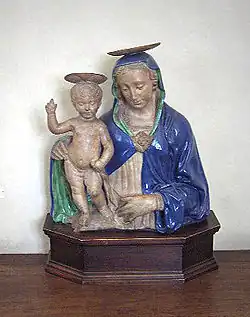 In the corner room, three Madonna and Children paintings are on display. The first, Madonna and Child is by the Master of Saints Flora and Lucilla, from the 14th century. The second, Madonna and Child with Saint Little Saint John is a later Renaissance work by Spanish artist Alonso Berruguete from 1514 to 1518, and the third is Madonna and Child by prominent Sienese artist Pietro Lorenzetti. This room also holds Adoring Angel by Tino di Camaino from around 1321, a Bust of Saint Antonino in painted plaster from the 15th century, and an embroidery designed by Raffaellino del Garbo.