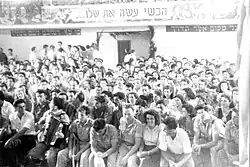 The Palmach (Hebrew: פלמ״ח‎, acronym for פלוגות מחץ‎, Plugot Maḥatz, "Strike Phalanges/Companies") was the elite combined strike forces and sayeret unit of the Haganah, the main paramilitary organization of the Yishuv (pre-1948 Jewish community in Palestine) during the period of the British Mandate. The Palmach was established in May 1941. By the outbreak of the 1948 Arab–Israeli War, it consisted of over 2,000 men and women in three fighting brigades and auxiliary aerial, naval and intelligence units. With the creation of Israel's army, the three Palmach Brigades were disbanded. This and political reasons compelled many of the senior Palmach officers to resign in 1950.[1]