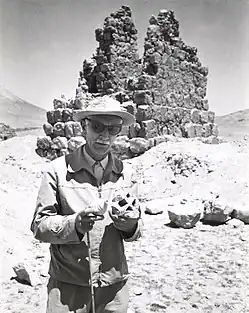 West of the ancient walls, the Palmyrenes built a number of large-scale funerary monuments which now form the Valley of Tombs,[122] a one-kilometre-long (0.62 mi) necropolis.[123] The more than 50 monuments were primarily tower-shaped and up to four stories high.[124] Towers were replaced by funerary temples in the first half of the second century AD, as the most recent tower is dated to AD 128.[27] The city had other cemeteries in the north, southwest and southeast, where the tombs are primarily hypogea (underground).[125][126]
