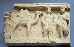 Zabdibel, who aided the Seleucids in the battle of Raphia (217 BC), was mentioned as the commander of "the Arabs and neighbouring tribes to the number of ten thousands";[45] Zabdibel and his men were not actually identified as Palmyrenes in the texts, but the name "Zabdibel" is a Palmyrene name leading to the conclusion that he hailed from Palmyra.[46] The Arab newcomers were assimilated by the earlier inhabitants, used Palmyrene as a mother tongue,[47] and formed a significant segment of the aristocracy.[48]