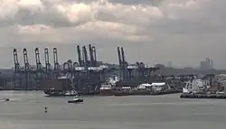 Though the Hong Kong company Hutchison Port Holdings does have a concession to operate two ports near the ends of the canal – the Balboa port on the Pacific side and the Cristóbal port on the Atlantic side – neither these ports nor the company control access to the canal.[91] Three other ports near the canal's ends are operated by companies from Taiwan and Singapore, and joint venture from the United States and Panama.[91] The government of Panama receives dividends from the Hutchinson concession, but the locks and Marine Traffic Control are run independently by the Panama Canal Authority, and the harbor pilots that guide ships are Panamanian.[92]