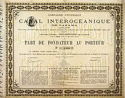 The French diplomat and entrepreneur Ferdinand de Lesseps and engineer Philippe Bunau-Varilla were the driving forces behind French attempts to construct the Panama Canal (1881–1889). De Lesseps had made his reputation by successfully constructing the Suez Canal (1859–1869), a route that had soon proved its value in international commerce.[20] After this success, he actively sought new projects. In 1875, de Lesseps was approached by the Société Civile Internationale du Canal Interocéanique par l'isthme du Darien (also known as the "Türr Syndicate"), a syndicate formed to promote the building of an interoceanic canal across Panama. Its directors were Hungarian freedom fighter István Türr, financier Jacques de Reinach and Türr's brother-in-law Lt. Lucien Bonaparte-Wyse.[21][22] Between 1876 and 1878, Bonaparte-Wyse and Armand Reclus investigated several potential routes across the isthmus of Panama. Bonaparte-Wyse rode by horseback to Bogotá, where he obtained a concession from the Colombian government to build a canal across Panama (20 March 1878). The agreement, known as the Wyse Concession, was valid for 99 years and allowed the company to dig a canal and exploit it.[23]