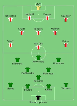 In the semi-finals, Panathinaikos faced Ajax, recording an impressive 0–1 first leg away victory with Krzysztof Warzycha scoring the winning goal. Ajax had a record of 22 undefeated international matches until then, with Panathinaikos breaking their series. The Greek team, however, suffered a 0–3 defeat on the second leg. Thus, Panathinaikos was denied entry to a Champions League final once more.