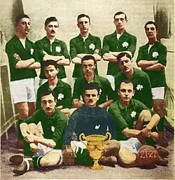 The team in 1911, with Giorgos Kalafatis (center, holding the ball) and coach John Cyril Campbell (sitting on the far right).