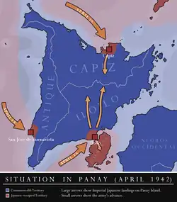 On April 16, 1942, Imperial Japanese Army forces landed at San Jose de Buenavista, Capiz City (now the city of Roxas), and Iloilo City during World War II in order to secure Panay and the rest of Visayas. Guerrilla forces under Colonel Macario Peralta Jr. later liberated most of the island and eventually captured the city of Capiz on December 20, 1944. Peralta's forces therefore achieved the liberation from Japanese occupation of all of Capiz Province before Allied forces landed at Iloilo City on March 18, 1945, and mopped up the remaining Japanese forces in the island.[30]