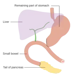 - ^ Ortega-Deballon P, Robledo J, Reyes J, Salazar M (2020). "Antecolic versus retrocolic reconstruction after partial pancreaticoduodenectomy". Cochrane Database of Systematic Reviews. 2022 (4) CD011862. doi:10.1002/14651858.CD011862.pub3. PMC 8750387. PMID 32259249.